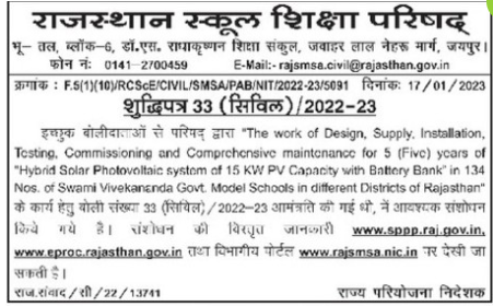 Tender for “The work of Design, Supply, Installation, Testing. Commissioning and Comprehensive maintenance for 5 (Five) years of “Hybrid Solar Photovoltaic system of 15 KW PV Capacity with Battery Bank”