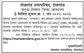 Ahmednagar E-Tender Notice No. 1st 2022 2023