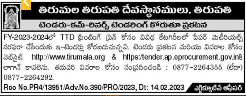 Tender for Tirumala Tirupati Devasthanams, Tirupati
