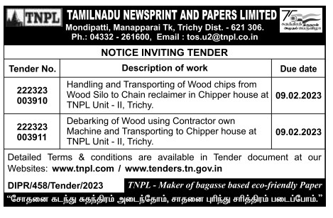 Tender for TNPL TAMILNADU NEWSPRINT AND PAPERS LIMITED 75 Mondipatti, Manapparai Tk, Trichy Dist