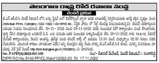 TNRTC from people interested in Outsourcing Free Toilets at Bus Stations in Medak Region