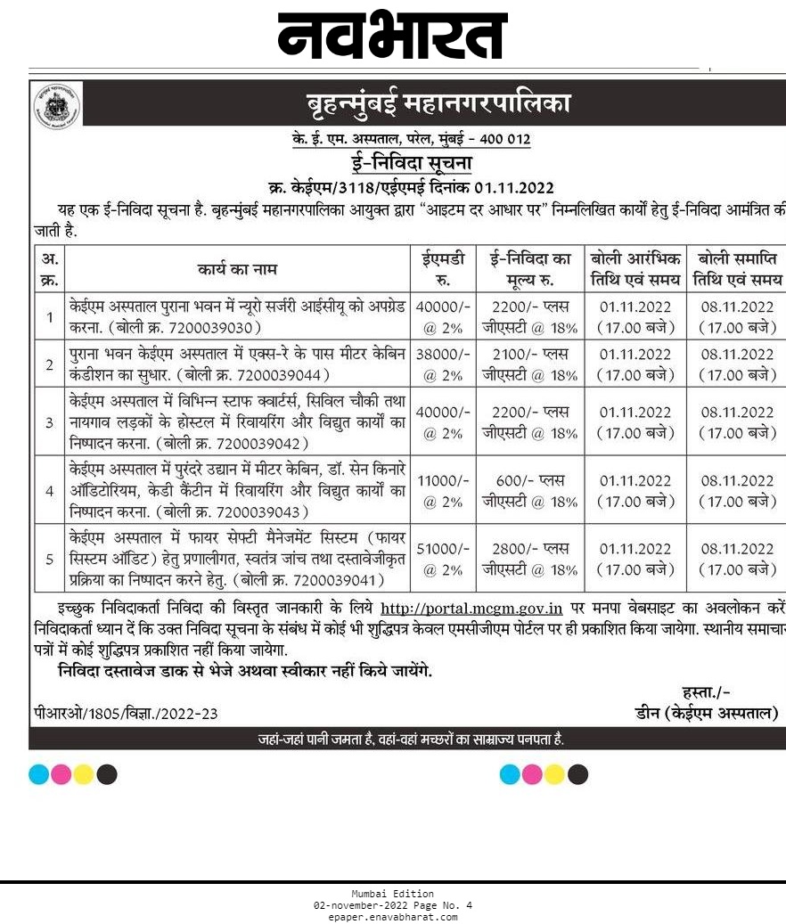Tender for To perform systematic, independent investigation and documented procedure for Fire Safety Management System (Fire System Audit) in KEM Hospital (Bid No. 7200039041 )