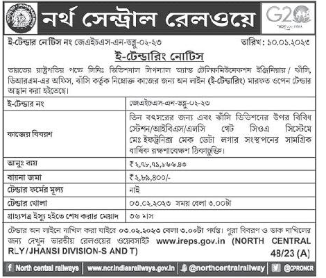 Tender for Total Annual Maintenance Contract for Installation of Mech Eftronics Make Data Logger at Various Stations/IBS/NC Gate COA System over Jhansi Division for three years.