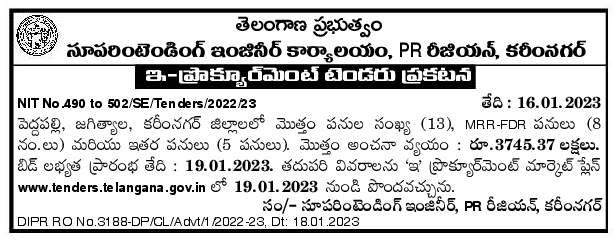 Total number of works (13), MRR-FDR works (8 nos.) and other works (5 works) in Peddapally, Jagityala, Karimnagar districts.