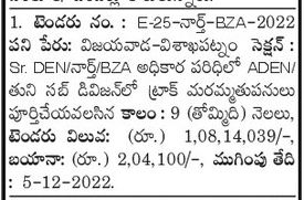Vijayawada – Visakhapatnam Section: Sr. TRACK REPAIR WORKS AT ADEN/ TUNI SUB DIVISION UNDER DEN/NORTH /BZA JURISDICTION
