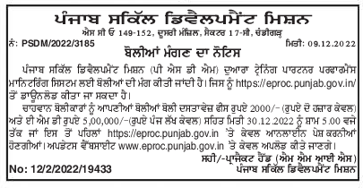 Tender for Training Partner Performance Monitoring System by Punjab Skill Development Mission (PSDM)