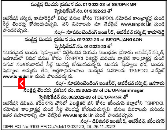 TSNPDCL registered contractors of Karimnagar District for electrical work in Operation Division, Karimnagar Town