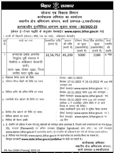 Tender for Under Bankatwa Block Shekhauna-1 graveyard siege work in Nimuiya East Panchayat. Khata 540, Khesra 3291 District Level Selection List 184