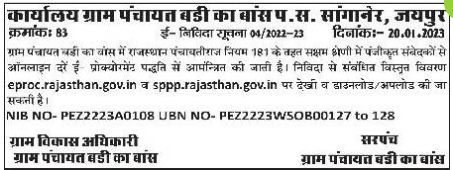 Under Rajasthan Panchayatiraj Rule 181 in Gram Panchayat Badi Ka Bans, online rates are invited from the registered