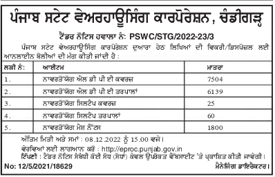 Tender for Unusable LDAP values, Unusable LDPE tarpaulins, Unusable Milltape Covers, Disposable Milltape Tarpaulins, Disposable mesh nets