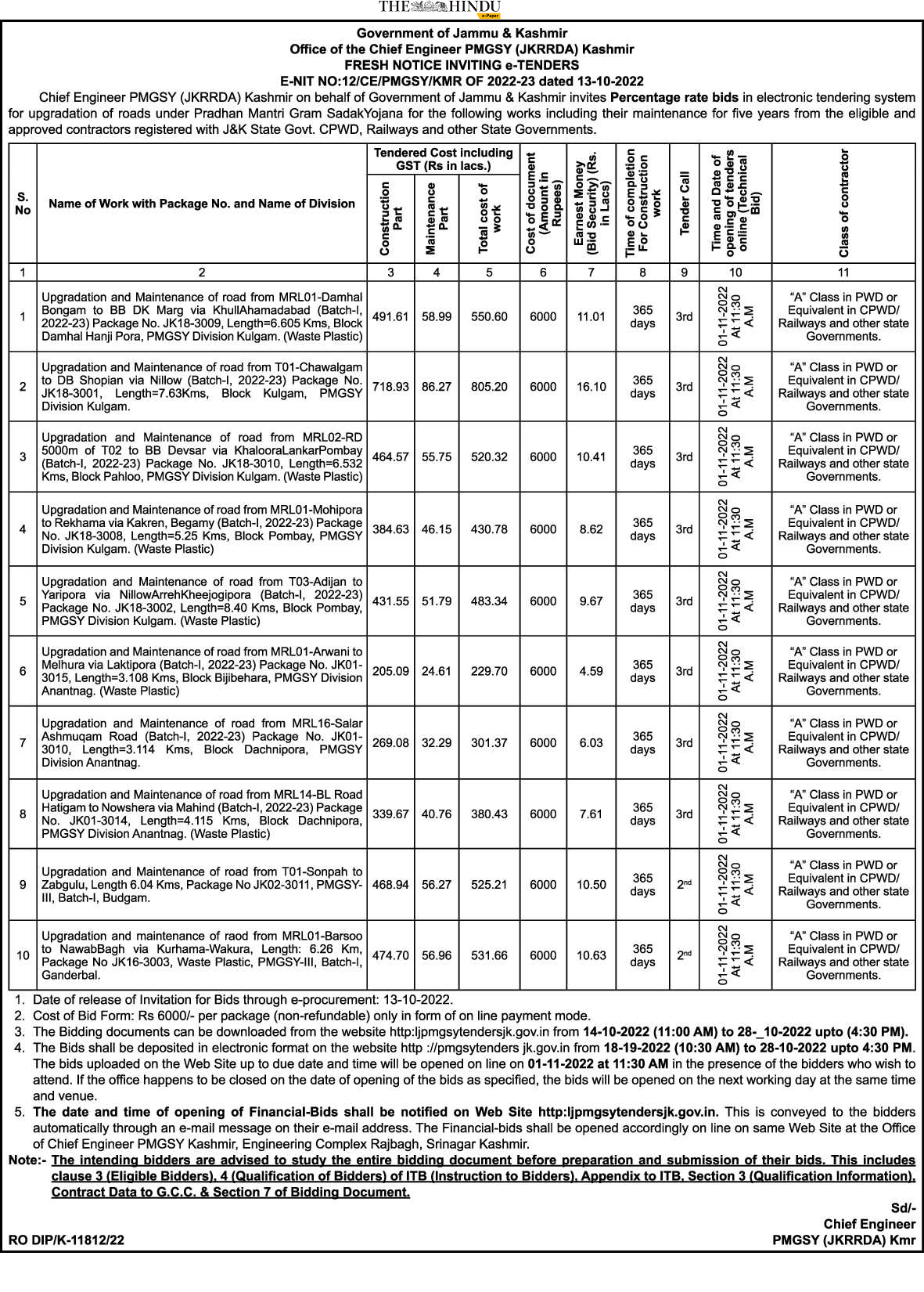 Upgradation and Maintenance of road from MRL01-Damhal Bongam to BB DK Marg via KhullAhamadabad (Batch-1, 2022-23) Package No. JK18-3009, Length-6.605 Kms, Block Damhal Hanji Pora, PMGSY Division Kulgam. (Waste Plastic)
