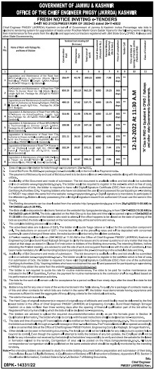 Tender for Upgradation & Maintenance of Road MRL02-NHW to Kachnambal via Chinner Length 3.65Km, Package No JK16-3005, PMGSY-III, Batch-I, Waste Plastic Ganderbal.