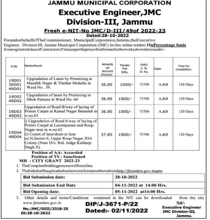 Tender for Upgradation of Lanes by Premixing at Mandlik Nagar & Thathar Mohalla in Ward No. 59.