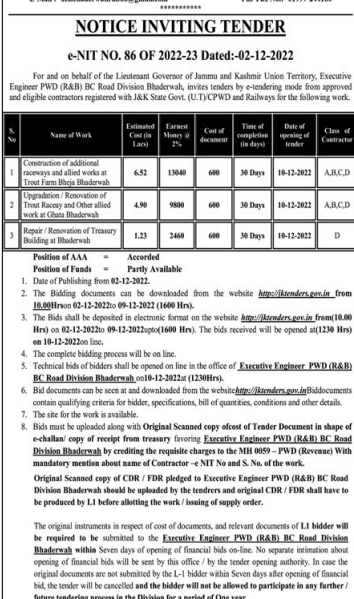 Tender for Upgradation/Renovation of Trout Raceay and Other allied work at Ghata Bhaderwah