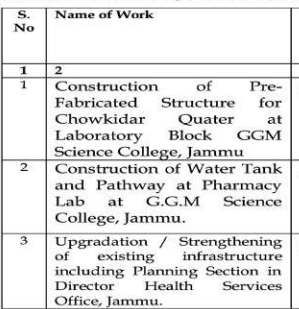 Tender for Upgradation / Strengthening of existing infrastructure including Planning Section in Director Health Services Office, Jammu.