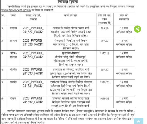 Tender for Upgradation work of Guthrawan-Sirpoi Antaria joint Modi Soytkhurd Soytkala road part of the destroyed road.