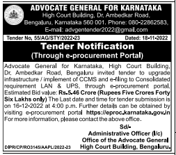 Tender for upgrade infrastructure/implement of CCMS and e-filing to Consolidated requirement LAN & UPS,