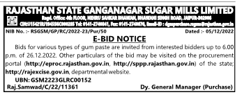 Tender for various types of gum paste in RAJASTHAN STATE GANGANAGAR SUGAR MILLS LIMITED