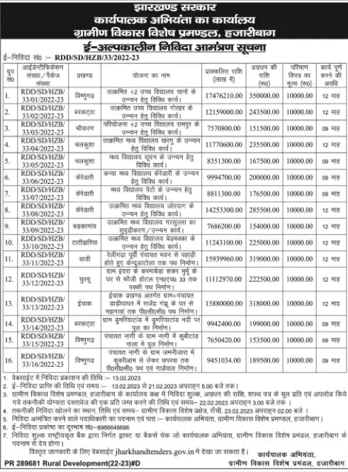 Tender for Various work project for upgradation of +2 High School Rampur RDD/SD/HZB/