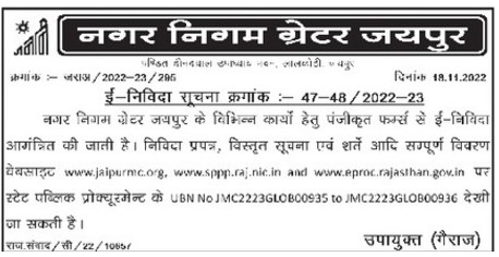 Tender for various works of Municipal Corporation Setter Jaipur.