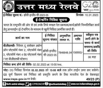 Tender for VGLB Repair to washable apron on Platform No. 2, Platform No. 3. Platform No. 4 and Platform No. 7 at VGLB station.