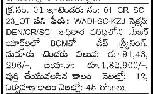 Tender for WADI-SC-KZJ Section: Deep Screening with BCM in Major Yars under DENICR/SC Jurisdiction.
