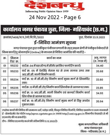 be downloaded from e-procurement web portal http/eproc.cgstate.gov.in or http//und.og.gov.in departmental website