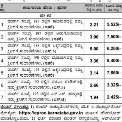 Tender for Ward No. Improvements to our clinic in BTM layout in 192 (SC)