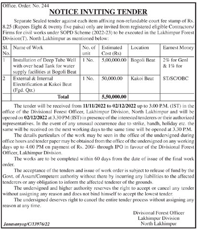 Installation of Deep Tube Well with over head Tank for water supply facilities at Bogoli Beat
