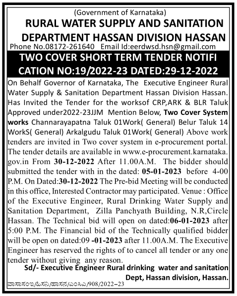 Water Supply & Sanitation Department Hassan Division Hassan.