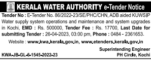 Tender for Water supply system operations and maintenance and system upgrades in Kochi,