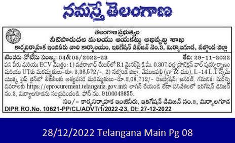 Wazirabad Major R1 km on Minor. 0.307 Reconstruction of protection wall and repairs to UT-Rs. 3,36,572/-, 2) Nalgonda District, Vemulapalli (G & Mu), L-141.1. Emergency Repairs to Pipe Line Leakages of Scheme