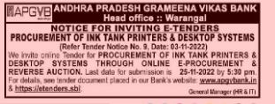 TENDER FOR We invite online Tender for PROCUREMENT OF INK TANK PRINTERS & DESKTOP SYSTEMS THROUGH ONLINE E-PROCUREMENT & REVERSE AUCTION.