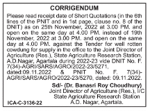 Tender for well rotten cowdung for supply in the office to the Joint Director of Agriculture (Res), State Agriculture Research Station,