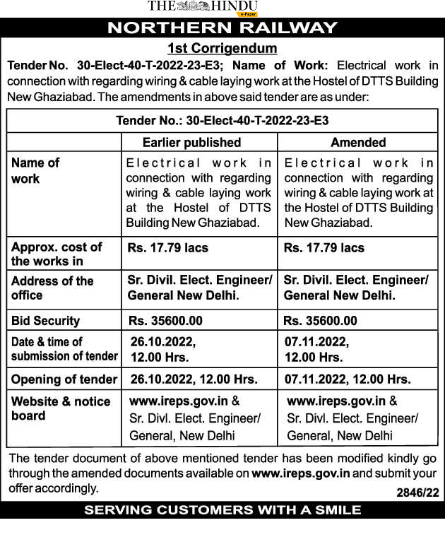 Electrical work in connection with regarding wiring & cable laying work at the Hostel of DTTS Building New Ghaziabad.