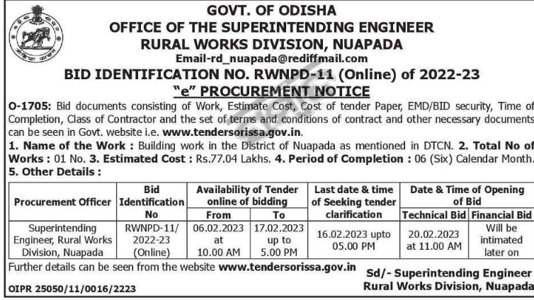 Work: Building work in the District of Nuapada as mentioned in DTCN.