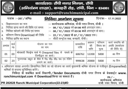 Tender for Work of installing P.C.C. path and railing behind Guru Nanak School