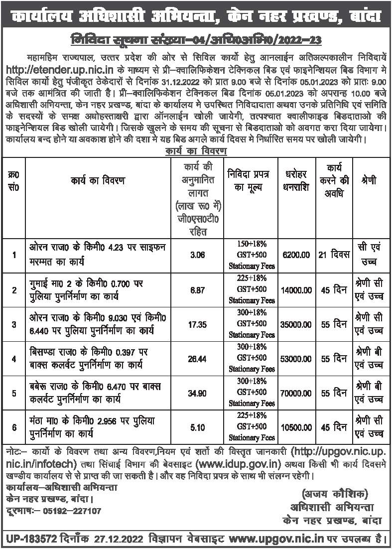Tender for Work of reconstruction of culvert at Km 0.700 of Gumai Road 2