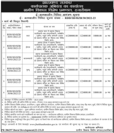 Tender for works in Sadar Development Officer Co-operative work and development of various construction works.