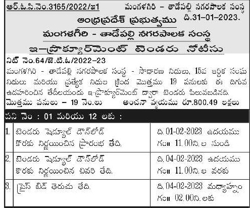 Tender for works under General Funds, 15th Financial Union Funds and Special Funds.