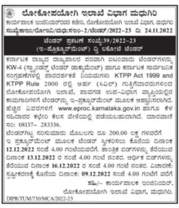 Tender for works under Public Works Department, Pavagada Sub-Division from qualified (civil) contractors in accordance with KW-4 (Standard Tender Document) and Transparency in Karnataka Public Procurement Rules KTPP Act 1999 and KTPP Rule 2000.