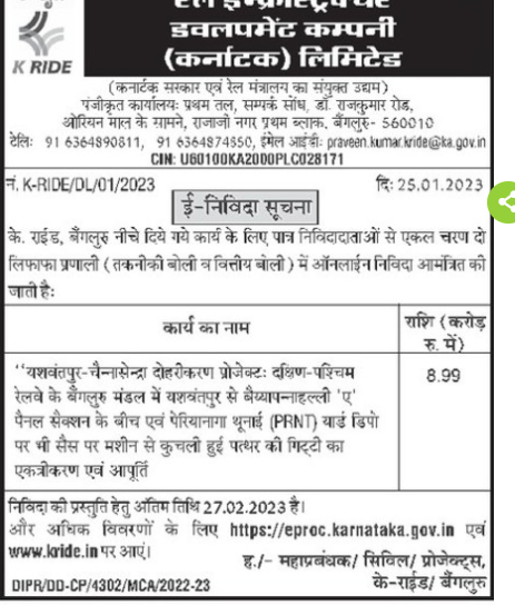 Yesvantpur – Channasendra Doubling Project: Collection and