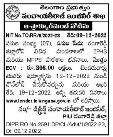 Tender for ZPHS and MPPS School Buildings in various Mandals of Ranga reddy District.