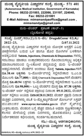 Tender from Mandya Institute of Medical Sciences, Mandya- 571 401 (Autonomous Medical Institution, Government of Karnataka)