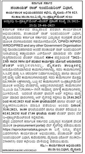 Tender Form KW-1. 2022-23 under the 5054 rain relief program