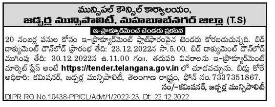 Tender is invited on e-procurement platform for 20 nos. of works.