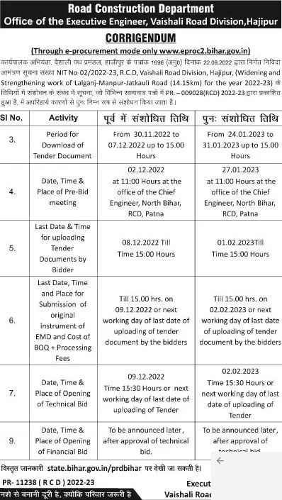 dated 22.08.2022 THE OUT NIT No-02/2022-23, R.C.D , Vaishali Road Division,