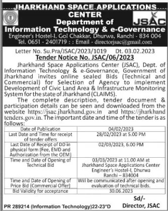 Jharkhand Space Applications Center (JSAC), Dept. of