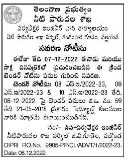 TENDER NOTICE WORKS PUBLISHED IN EINADU AND SAKSHI in Irrigation Department