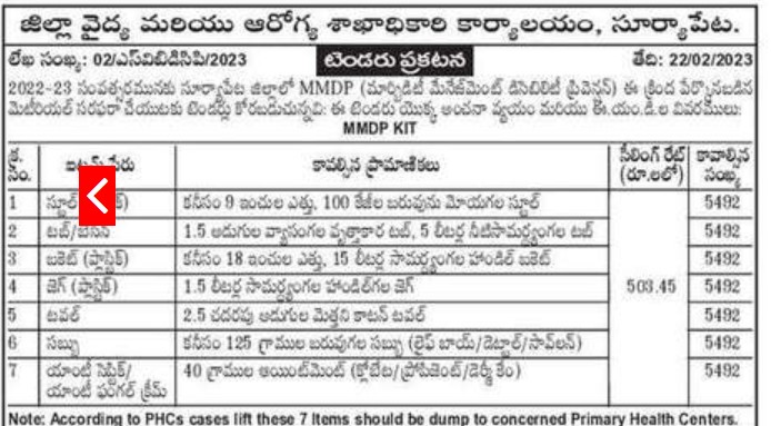 MMDP (Morbidity Management Disability Prevention) in Suryapet District for the year 2022-23 Tenders are invited for supply of material mentioned below: Estimated cost of this item and details of E.Y.M.D.s: